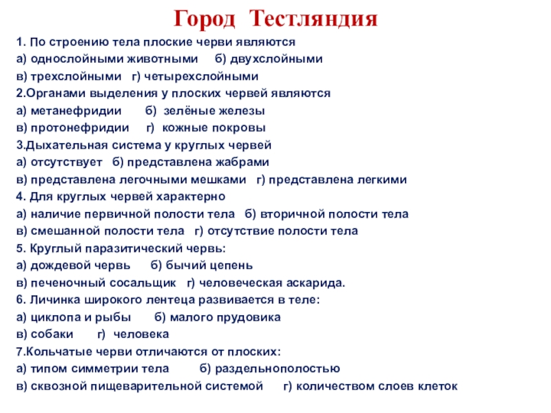 «Тип плоские черви.