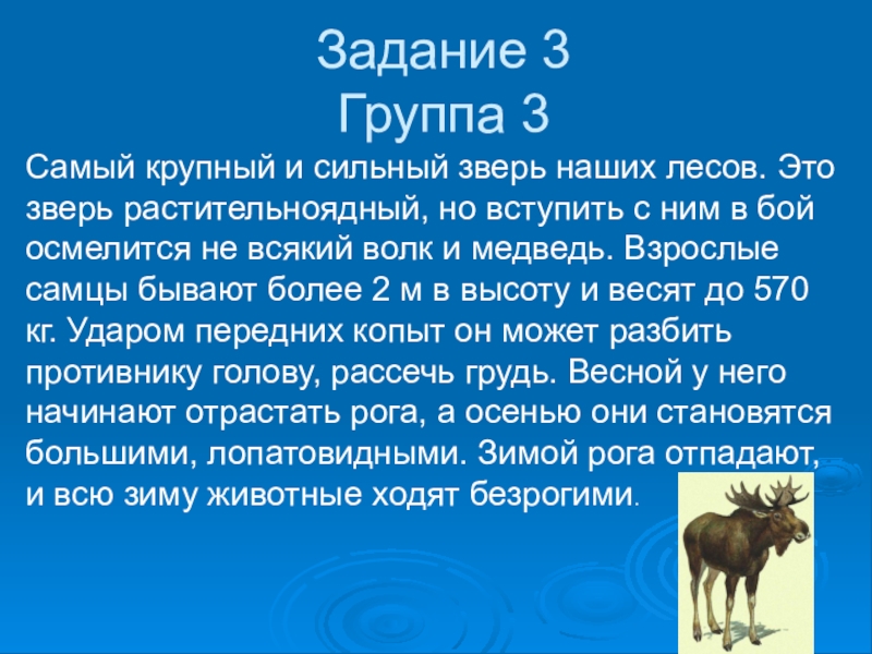 растительноядный, но вступить с ним в бой осмелится не всякий волк и медведь. Взрослые самцы бывают более 2 м в высоту и весят до 570 кг. Ударом передних копыт он может разбить противнику голову, рассечь грудь. Весной у него начинают отрастать рога, а осенью они становятся большими, лопатовидными. Зимой рога отпадают, и всю зиму животные ходят безрогими.