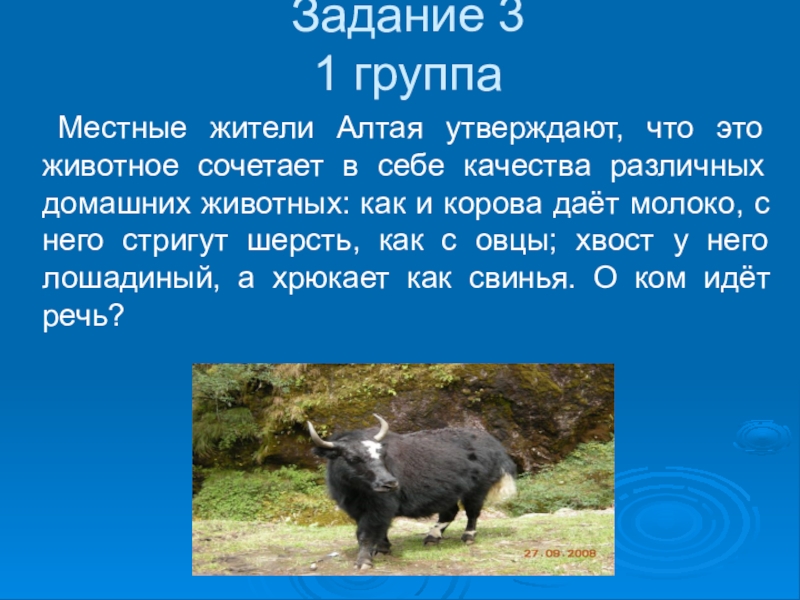 в себе качества различных домашних животных: как и корова даёт молоко, с него стригут шерсть, как с овцы; хвост у него лошадиный, а хрюкает как свинья. О ком идёт речь?