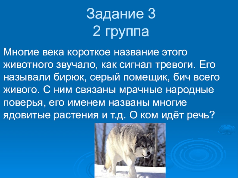 тревоги. Его называли бирюк, серый помещик, бич всего живого. С ним связаны мрачные народные поверья, его именем названы многие ядовитые растения и т.д. О ком идёт речь?