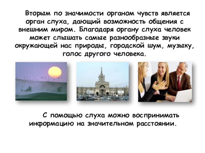 С помощью слуха можно воспринимать информацию на значительном расстоянии.