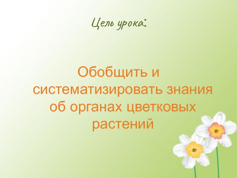 Обобщить и систематизировать знания об органах цветковых растенийЦель урока: