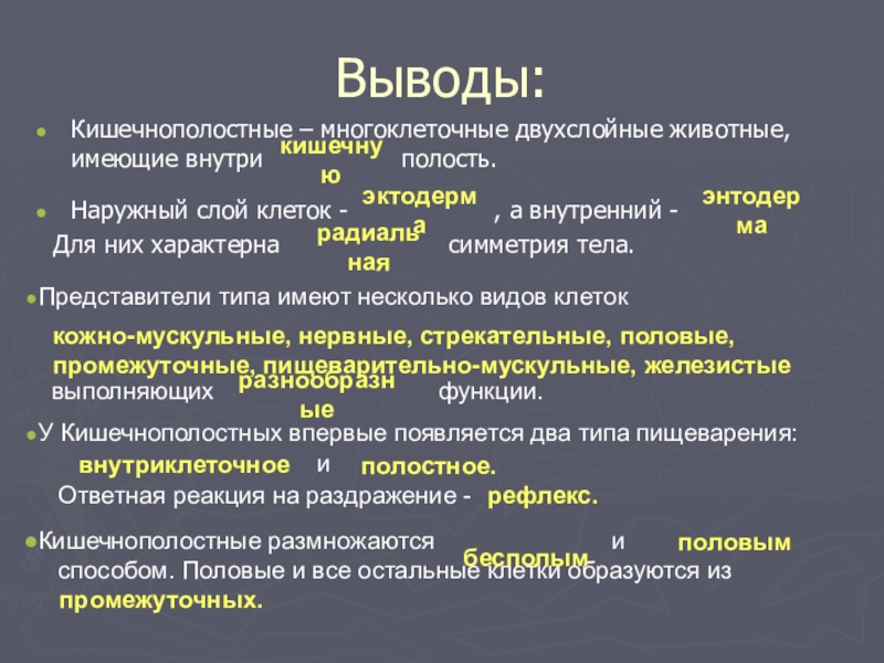 У Кишечнополостных впервые появляется два типа пищеварения: