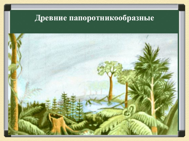 Слайд 13К группе папоротникообразных относят три отдела растений: папоротники, хвощи и плауны.