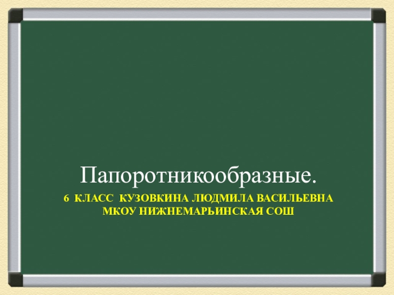 6 КЛАСС КУЗОВКИНА ЛЮДМИЛА ВАСИЛЬЕВНА  МКОУ НИЖНЕМАРЬИНСКАЯ СОШПапоротникообразные.
