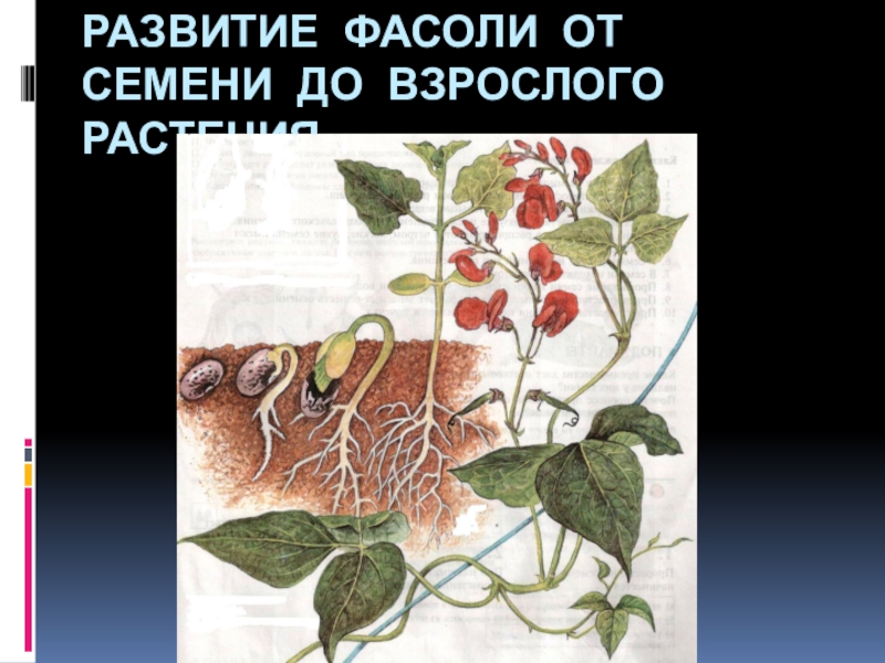 Слайд 26РАЗВИТИЕ ФАСОЛИ ОТ СЕМЕНИ ДО ВЗРОСЛОГО РАСТЕНИЯ.