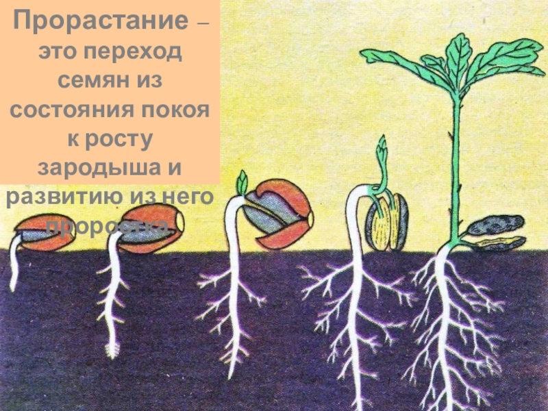 Слайд 18Прорастание – это переход семян из состояния покоя к росту зародыша