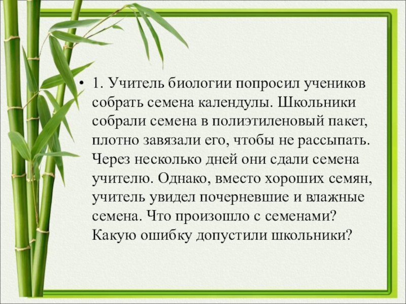 1. Учитель биологии попросил учеников собрать семена календулы. Школьники собрали семена