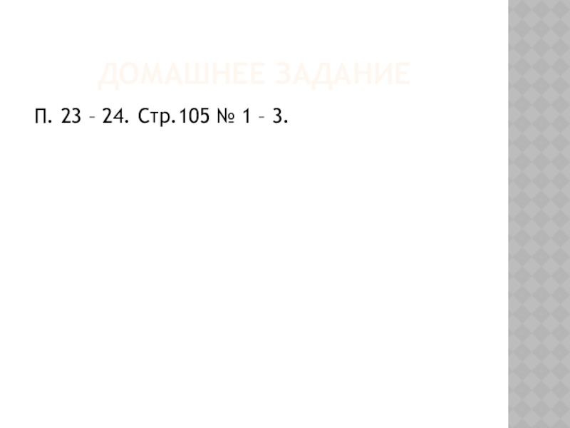 Домашнее заданиеП. 23 – 24. Стр.105 № 1 – 3.