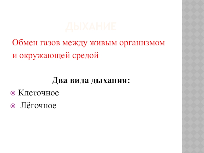ДыханиеОбмен газов между живым организмоми окружающей средойДва вида дыхания:Клеточное
