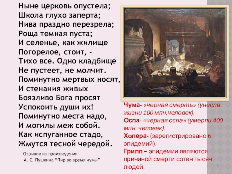Чума- «черная смерть» (унесла жизни 100 млн.человек).