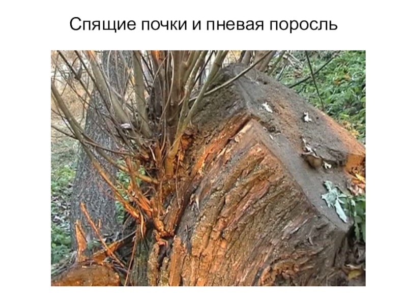 Когда главный ствол замедляет свой рост или его спиливают, спящие почки трогаются в рост, и из них вырастают облиственные побеги, образуя пневую поросль.