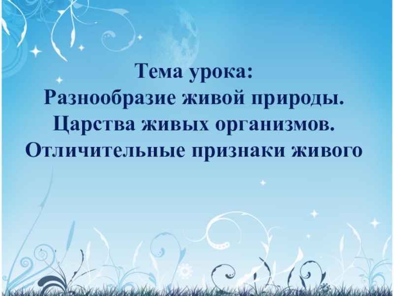 Слайд 1Тема урока: Разнообразие живой природы. Царства живых организмов. Отличительные признаки живого