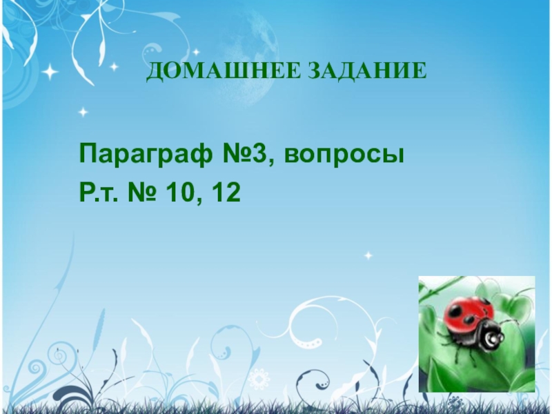ДОМАШНЕЕ ЗАДАНИЕПараграф №3, вопросыР.т. № 10, 12