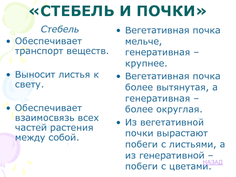Из вегетативной почки вырастают побеги с листьями, а из генеративной – побеги с цветами.