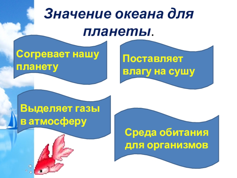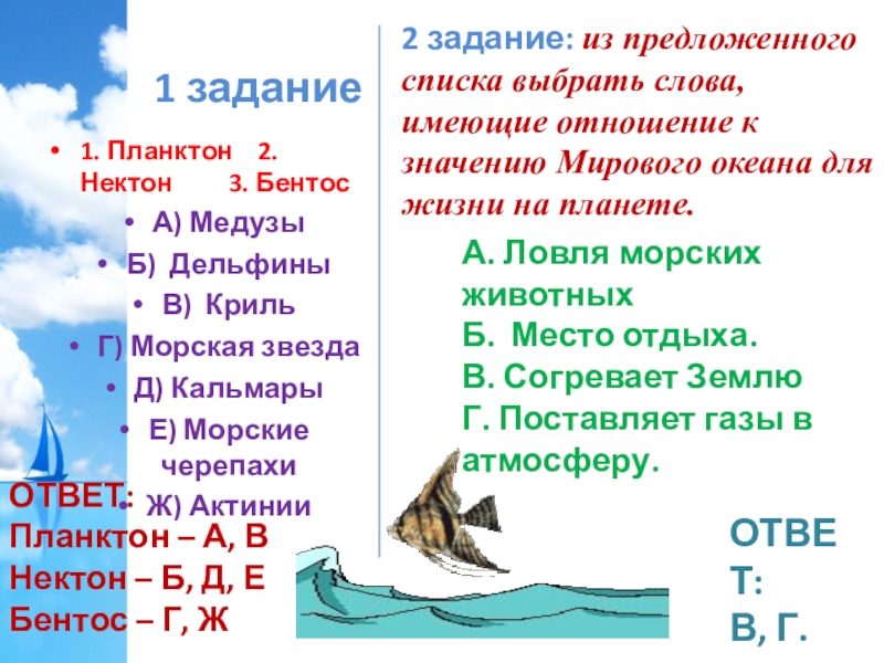 2 задание: из предложенного списка выбрать слова, имеющие отношение к значению Мирового океана для жизни на планете.