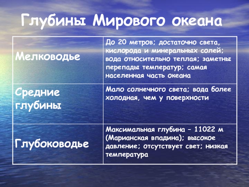 Слайд 4Глубины Мирового океана