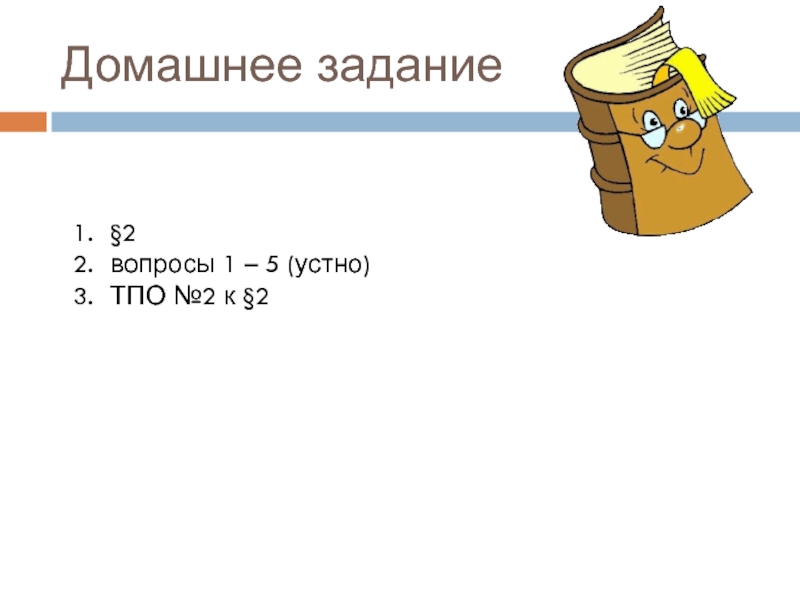 Домашнее задание§2 вопросы 1 – 5 (устно)ТПО №2 к §2
