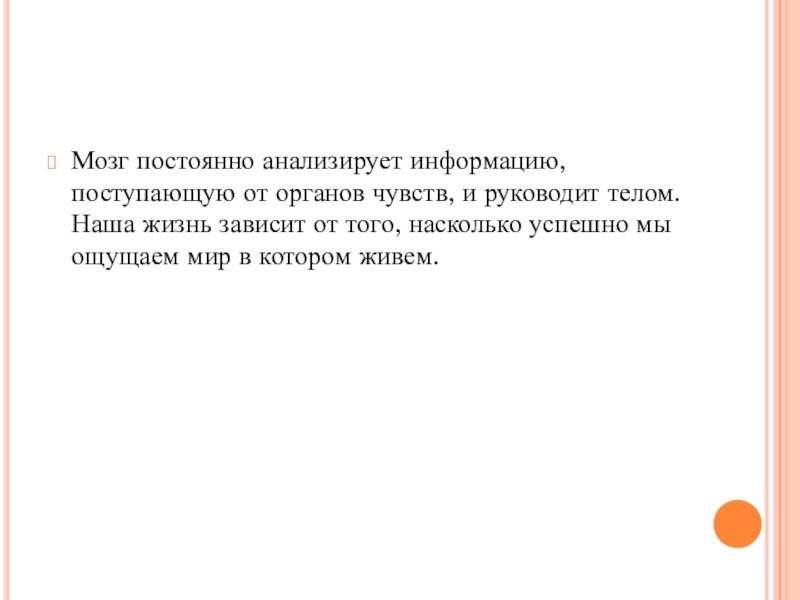 Мозг постоянно анализирует информацию, поступающую от органов чувств, и руководит телом.