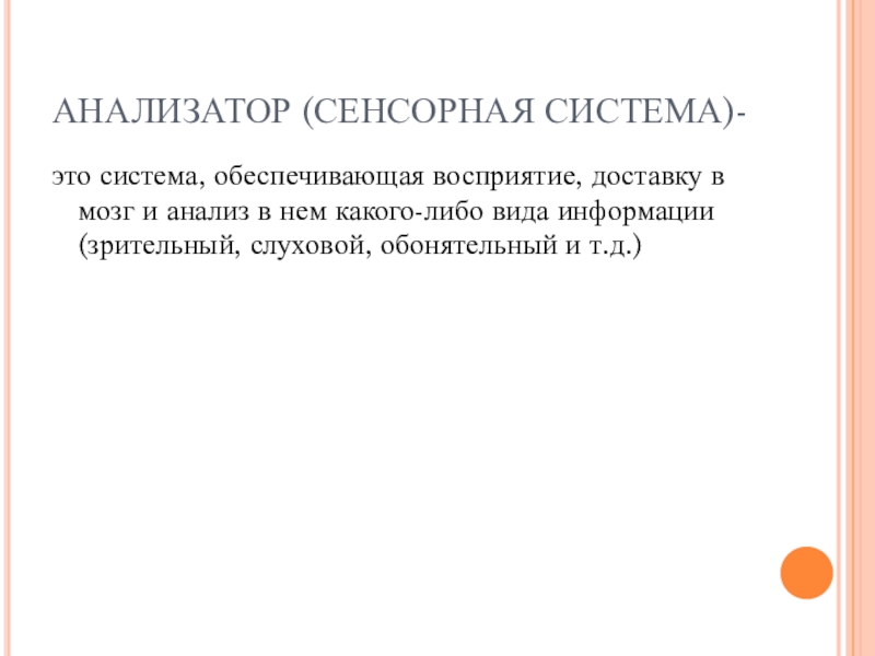 Слайд 3АНАЛИЗАТОР (СЕНСОРНАЯ СИСТЕМА)-