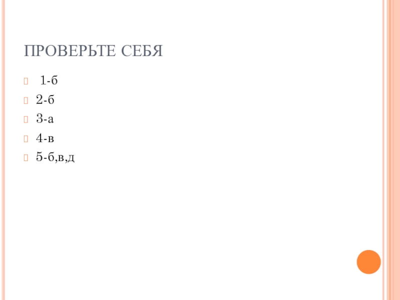 ПРОВЕРЬТЕ СЕБЯ 1-б2-б3-а4-в5-б,в,д