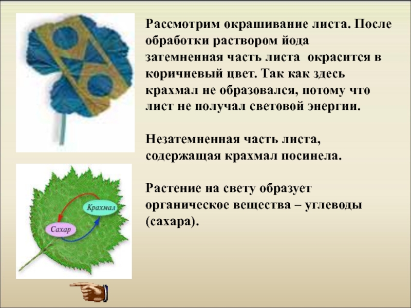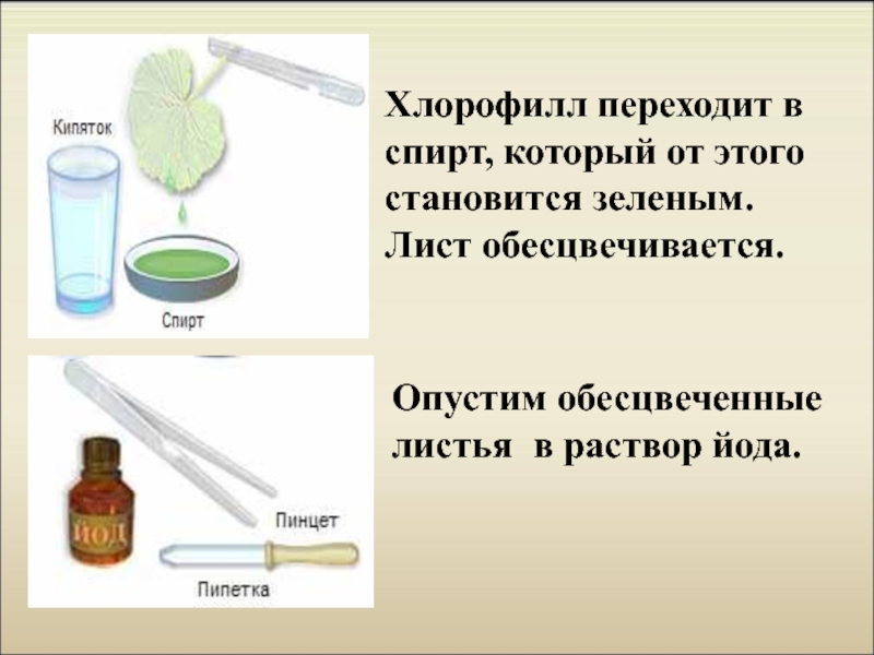 Опыт № 2 - Докажем, что растение на свету образует органические вещества