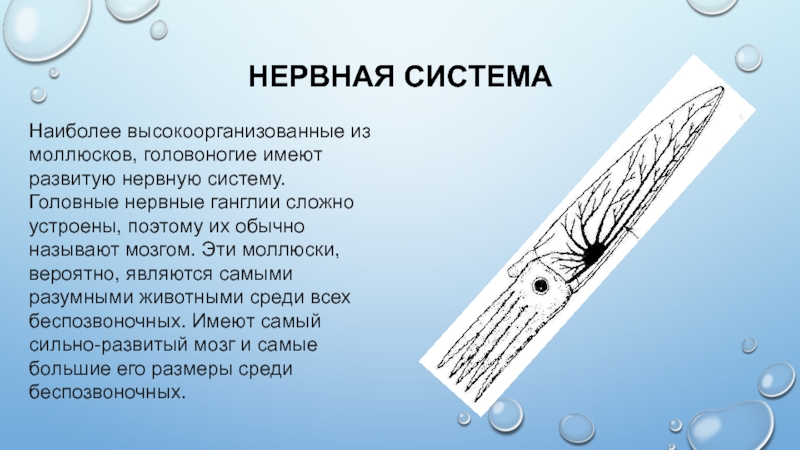 Наиболее высокоорганизованные из моллюсков, головоногие имеют развитую нервную систему. Головные
