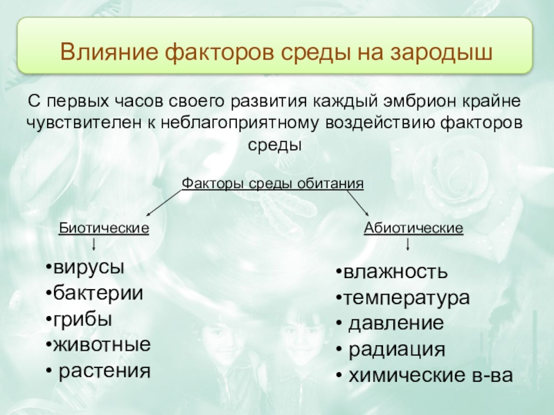 С первых часов своего развития каждый эмбрион крайне чувствителен к неблагоприятному воздействию факторов среды