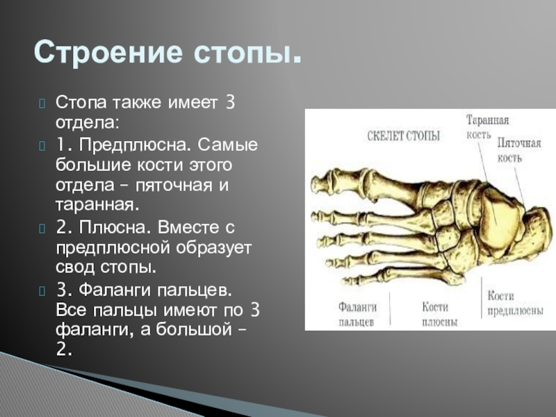 3. Фаланги пальцев. Все пальцы имеют 3 фаланги, а большой (противопоставленный) имеет всего 2 фаланги.