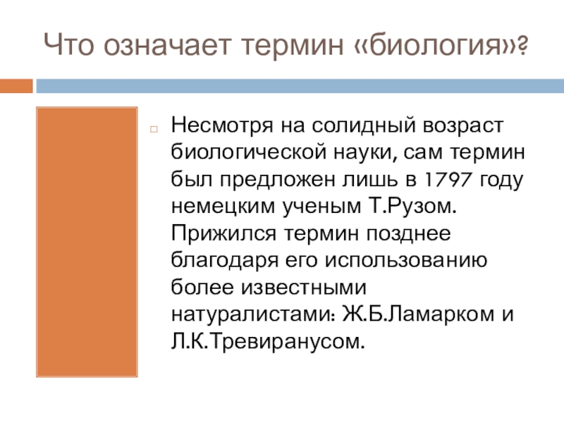 Что означает термин «биология»?Несмотря на солидный возраст биологической науки, сам термин был предложен лишь в 1797 году