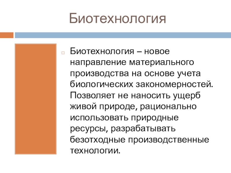 Биотехнология – новое направление материального производства на основе учета биологических закономерностей.