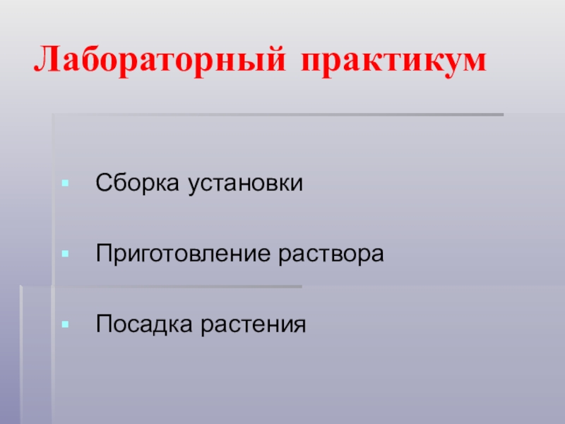 Лабораторный практикум   Сборка установкиПриготовление раствораПосадка растения