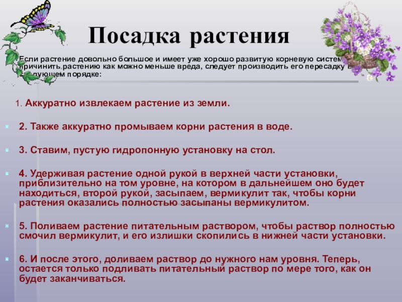 систему, то чтобы причинить растению как можно меньше вреда, следует производить его пересадку в следующем порядке: