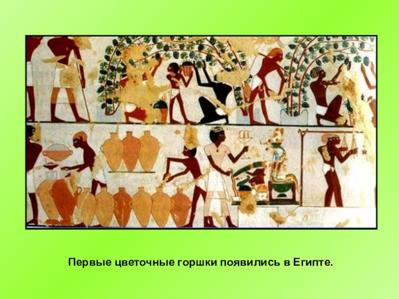 Слайд 8Первые цветочные горшки появились в Египте.