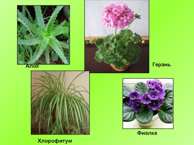 АлоэХлорофитумГераньФиалка