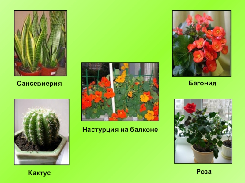 Настурция на балконеСансевиерия Кактус Бегония Роза