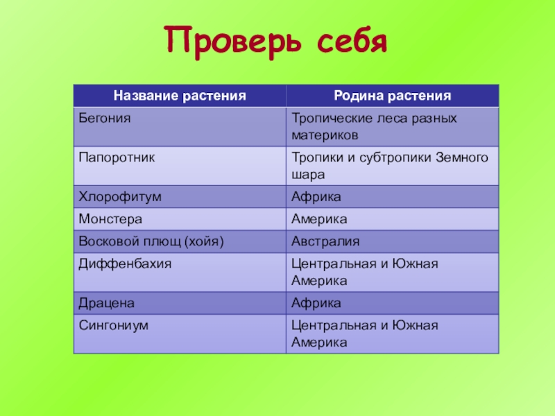 Родина большинства комнатных растений- жаркие