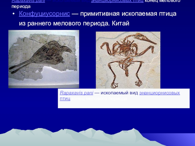Rapaxavis pani — ископаемый вид энанциорнисовых птиц конец мелового периода