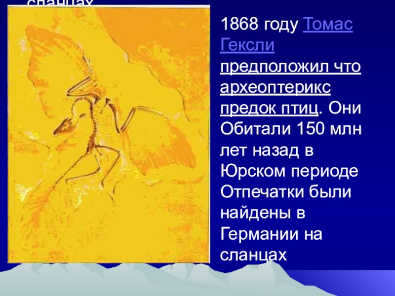 1868 году Томас Гексли предположил что археоптерикс предок птиц. Они