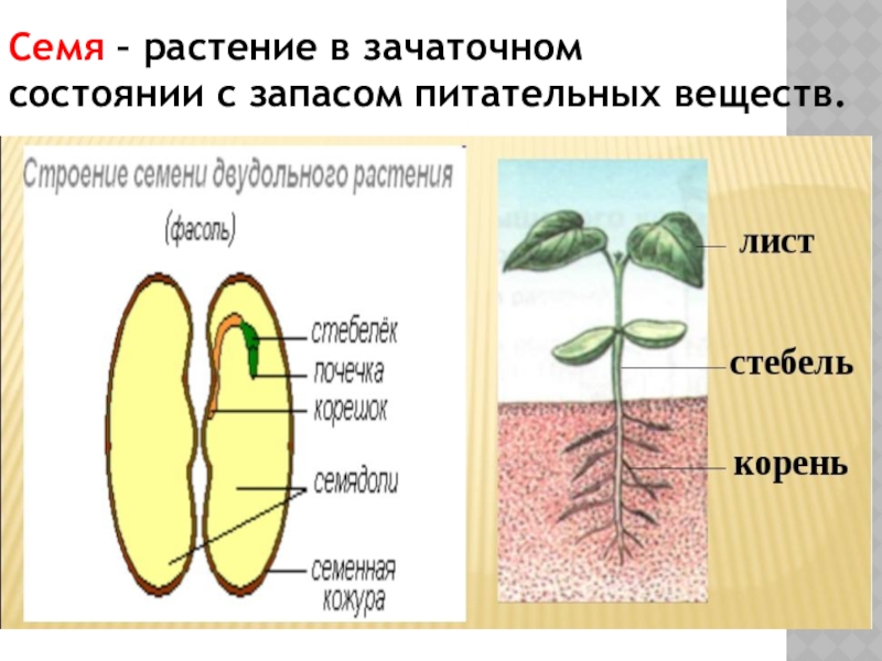 Семя – растение в зачаточном состоянии с запасом питательных веществ.