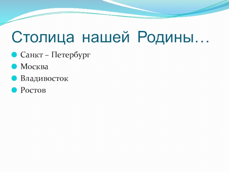 Столица нашей Родины…Санкт – ПетербургМоскваВладивостокРостов