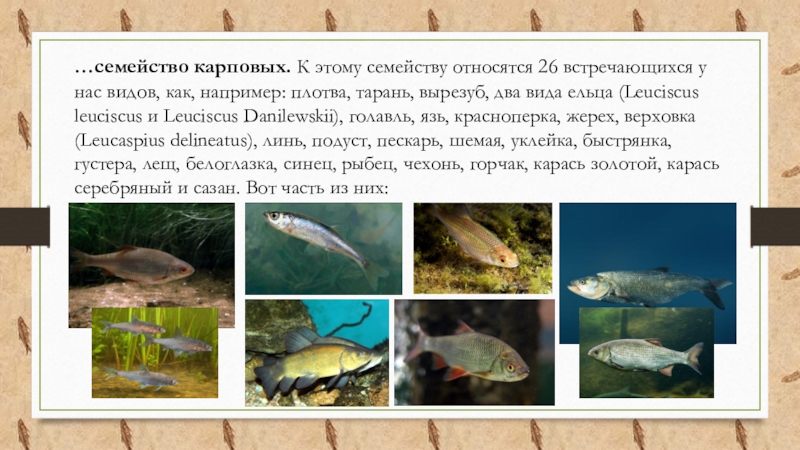Слайд 5…семейство карповых. К этому семейству относятся 26 встречающихся у нас видов,