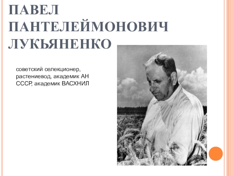 ПАВЕЛ ПАНТЕЛЕЙМОНОВИЧ ЛУКЬЯНЕНКО   советский селекционер, растениевод, академик АН СССР, академик ВАСХНИЛ