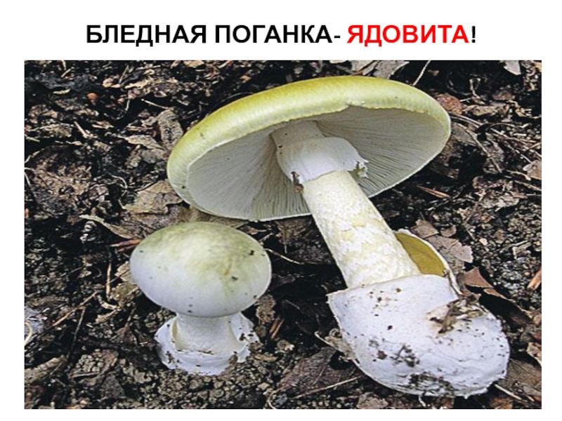 Слайд 12БЛЕДНАЯ ПОГАНКА- ЯДОВИТА!