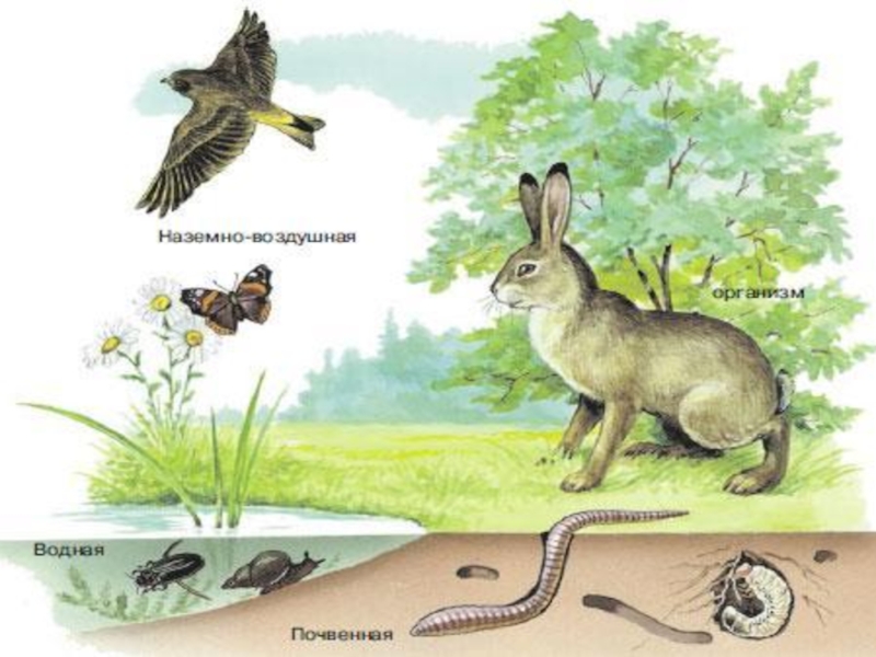 почвенную, организменную среды обитания.