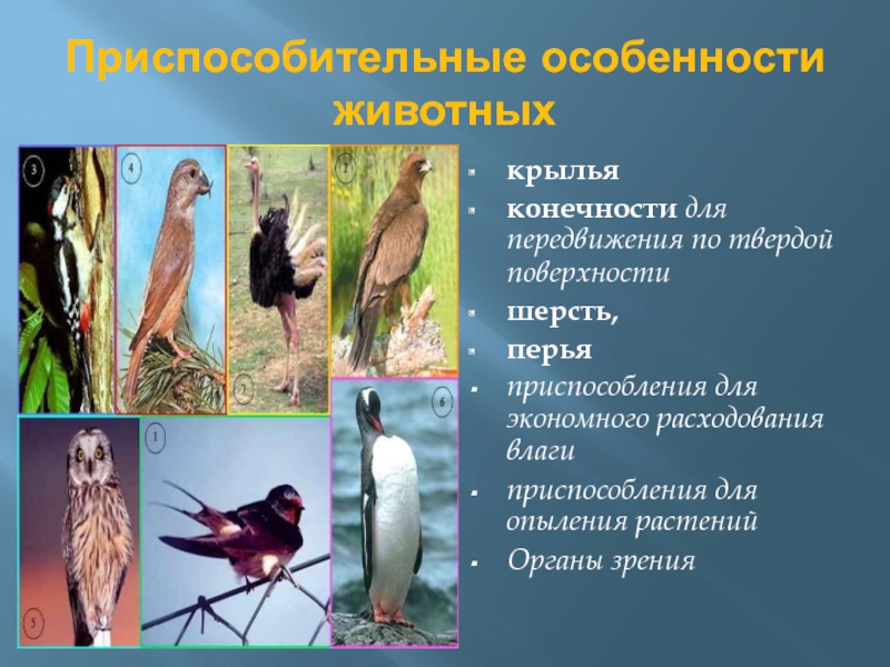 Слайд 16Приспособительные особенности животных