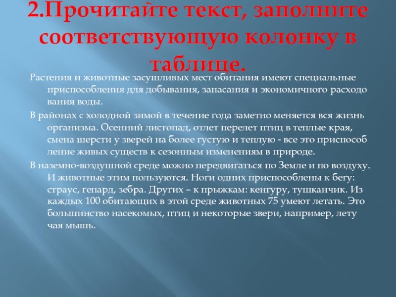 Слайд 152.Прочитайте текст, заполните соответствующую колонку в таблице.