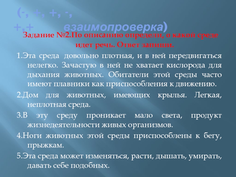 Задание №2.По описанию определи, о какой среде