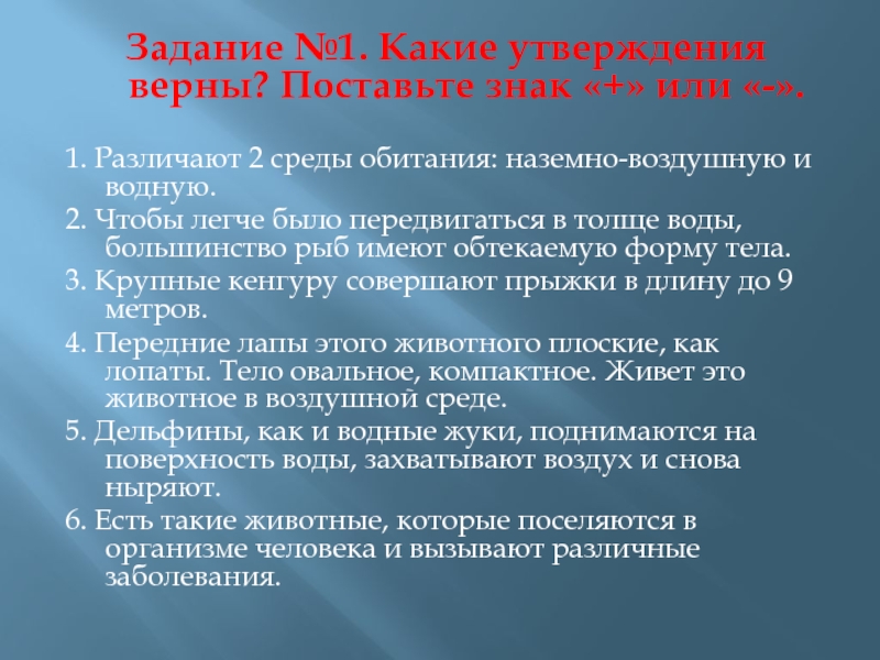 Слайд 25Задание №1. Какие утверждения верны? Поставьте знак «+» или «-».
