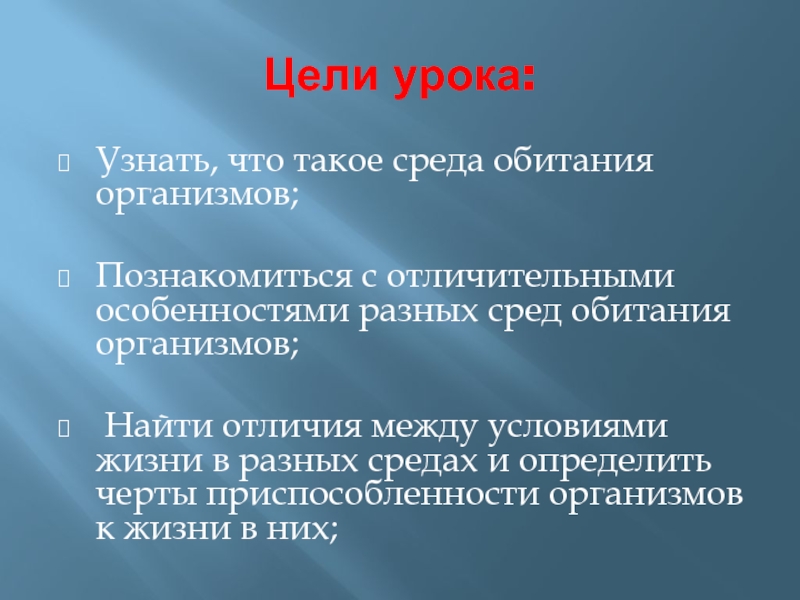 Узнать, что такое среда обитания организмов;